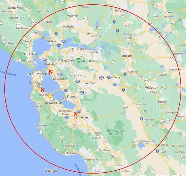 We service the greater San Francisco Bay Area and specialize in excursions to and from all Bay Area airports.